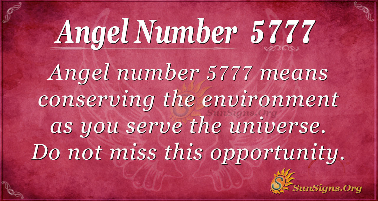 Purpose for Angel Number 5777 Olga says that the purpose of Angel Number 5777 is what the angels want you to do with its meaning. Angel Numbers You can look up another Angel Number here. It is there to reassure you that we understand your fears and concerns.